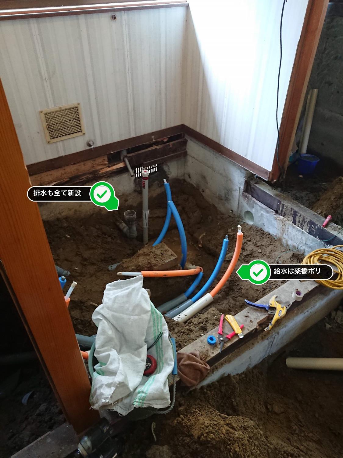 【ブログ割り・築35年の家】水回り+LDKリフォーム【その4】床下地・配管
