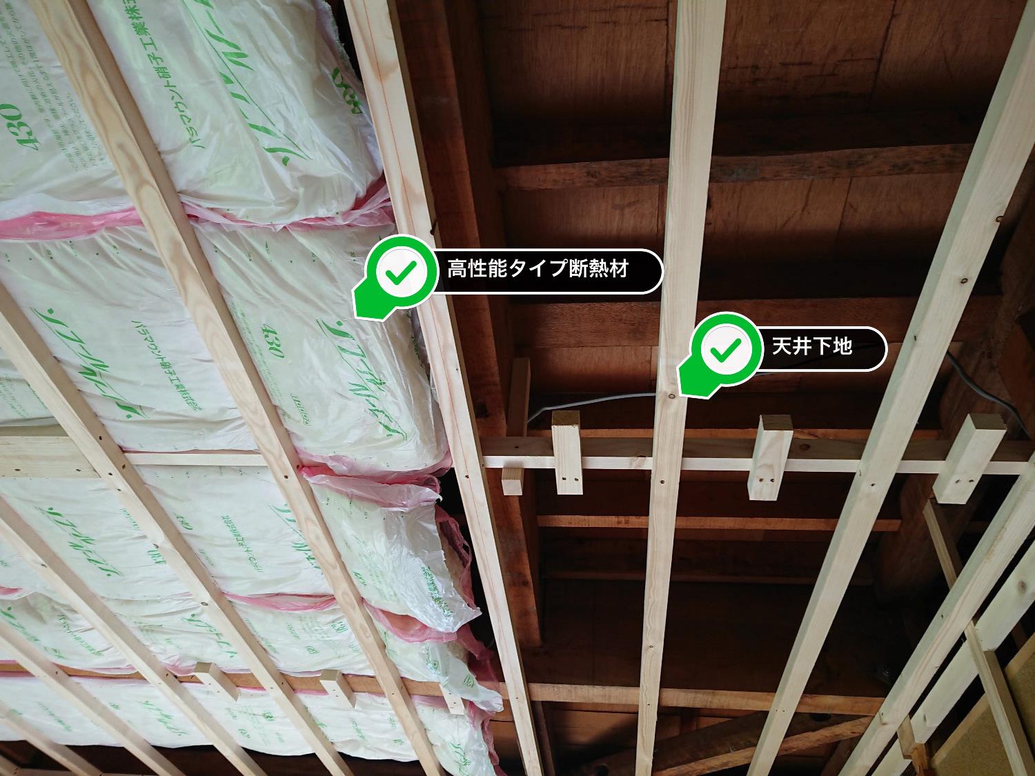 和室だったリビングは真壁になっています。断熱材自体は今までのものでも効いているので、今回はそのまま大壁にするため下地を組んでいきます。